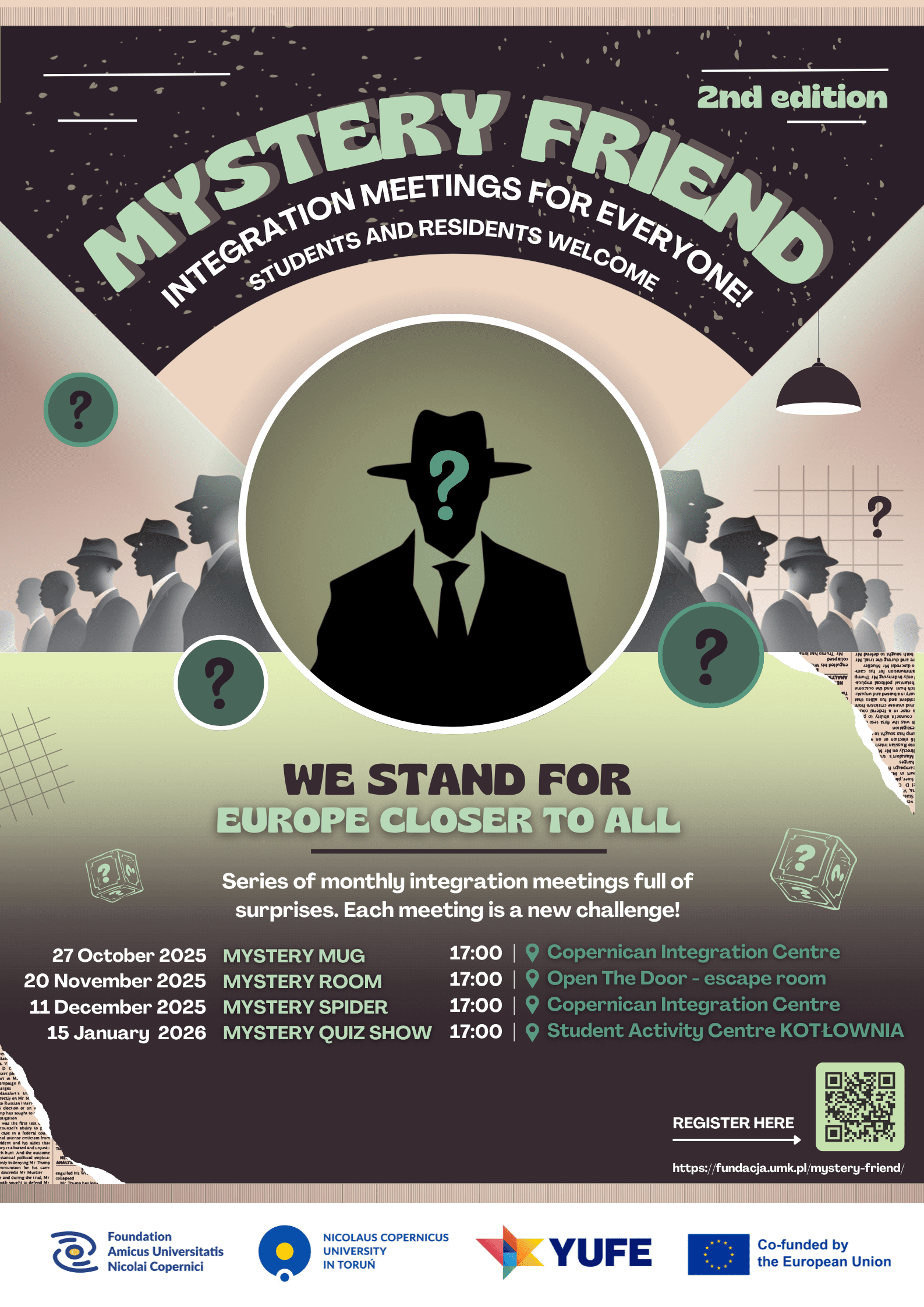 Mystery Friend is a series of monthly integration meetings full of surprises. Each meeting is a new challenge and a chance to develop in an atmosphere of intercultural exchange and social education. It will provide you with great fun and unforgettable experiences, while teaching you how to cooperate and integrate in a multicultural environment. There is something for everyone!